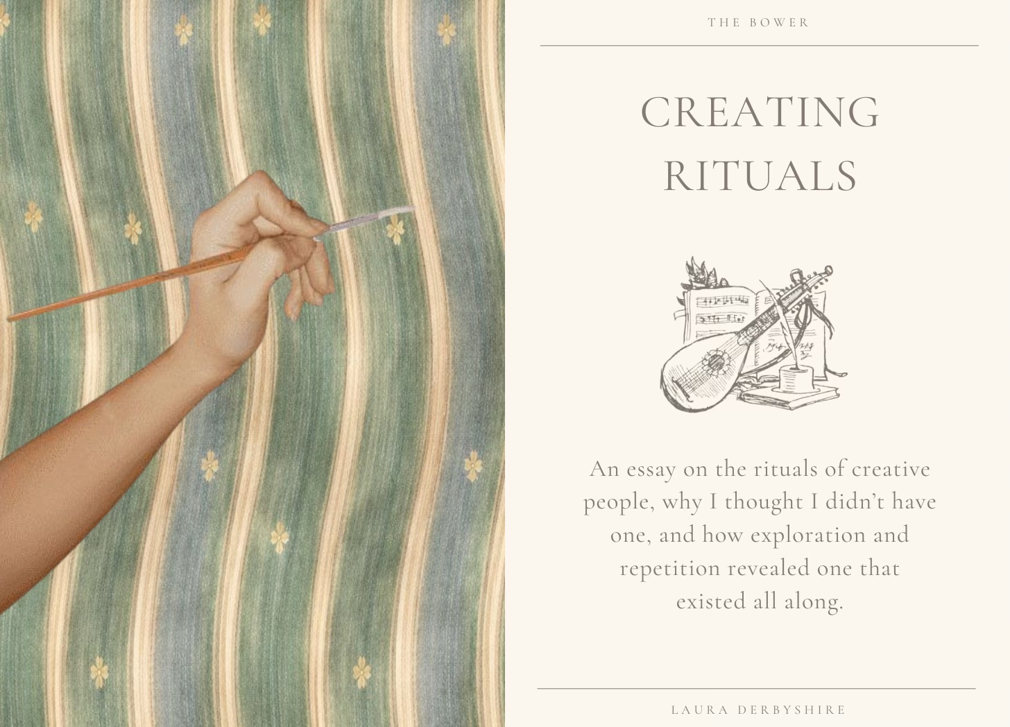 I’m Laura, an author, and my creative ritual consists of a cup of decaf in my studio, and a good playlist.